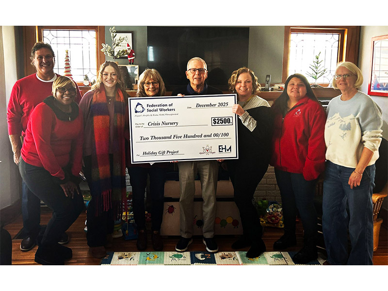 Alyssa's Angels President Chris Bruno (on the left), receives a check for $800 from Federation President Christina Christman (center) and Vice President LaWanda Shipman (on the right). Federation members raised money for this donation through Super Bowl square boards, which were purchased by FSW members at both Westfall Road and St. Paul Street Offices. Everyone at Alyssa's Angels is deeply grateful for the continued invaluable support that we receive from the Federation of Social Workers.